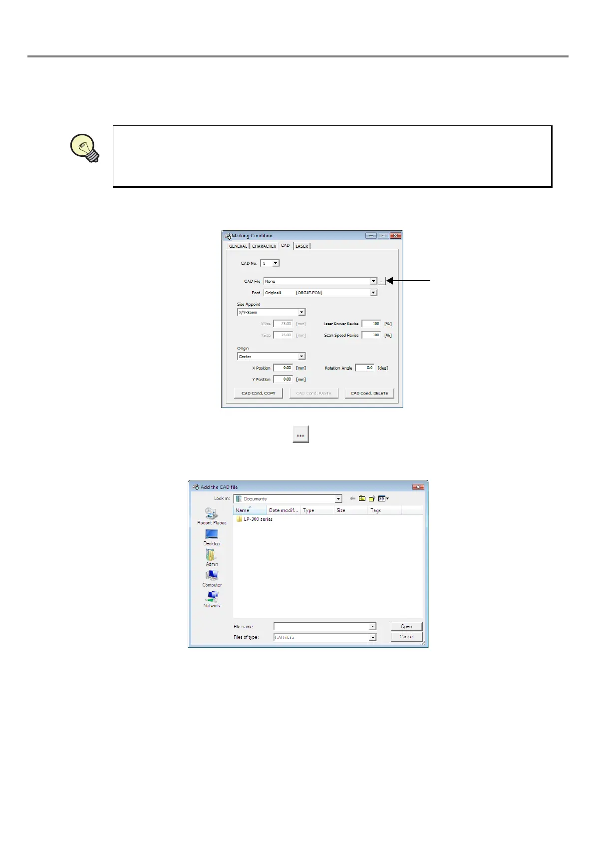 file) and specify the file. Note that when selecting “None (no CAD setting)”, no CAD file is set.