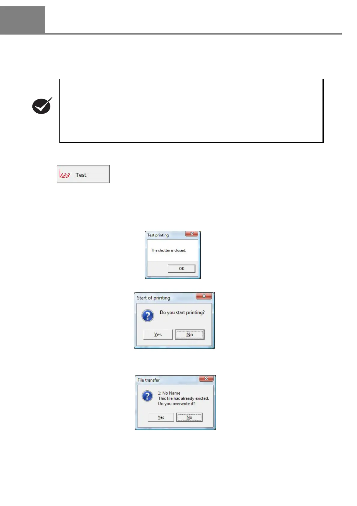 When the shutter is set to “OPEN”, the dialog box “Start of printing” is appeared.