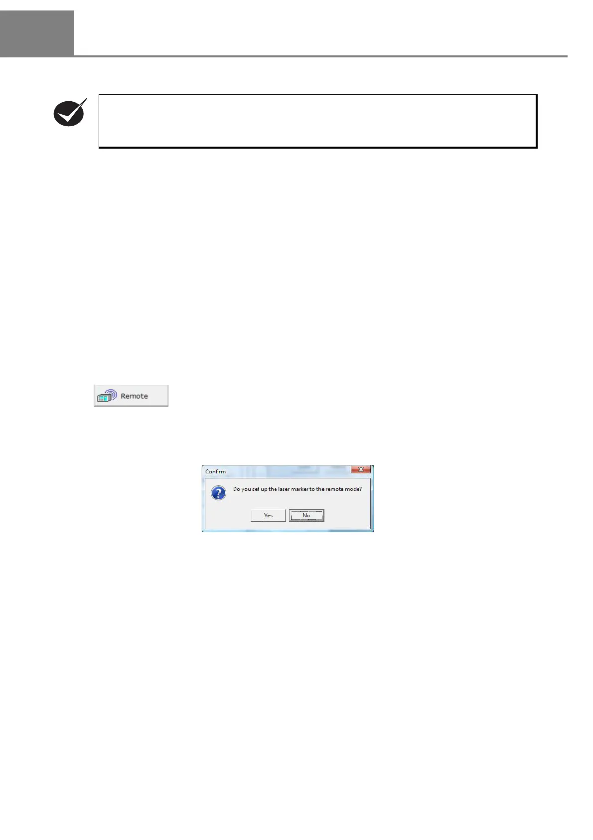 By clicking either “1” or “2”, the dialog box for confirming whether to set the laser marker into remote mode or
