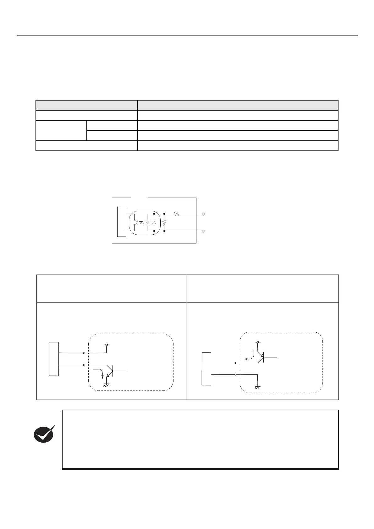 • If the open collector to be connected is NPN, use NPN to all the input and output circuits. If the