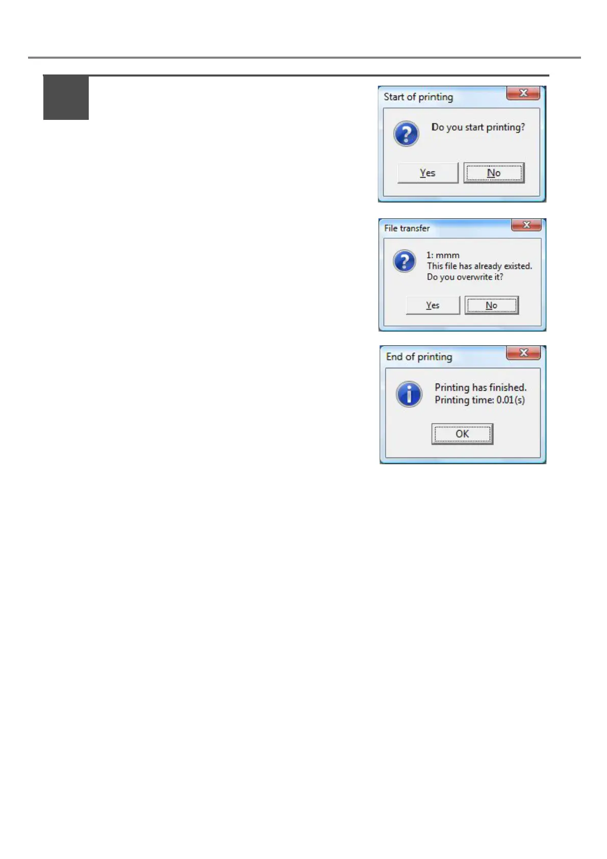 When selecting “Yes” on [Start of printing] dialog box,