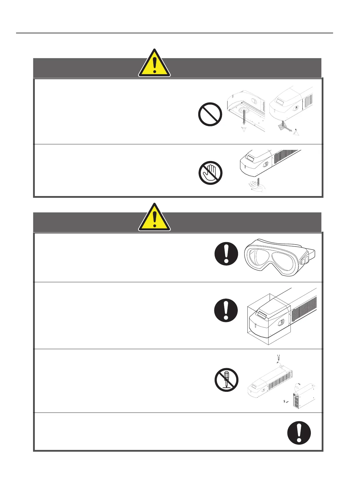 Never touch laser beam. Be careful not