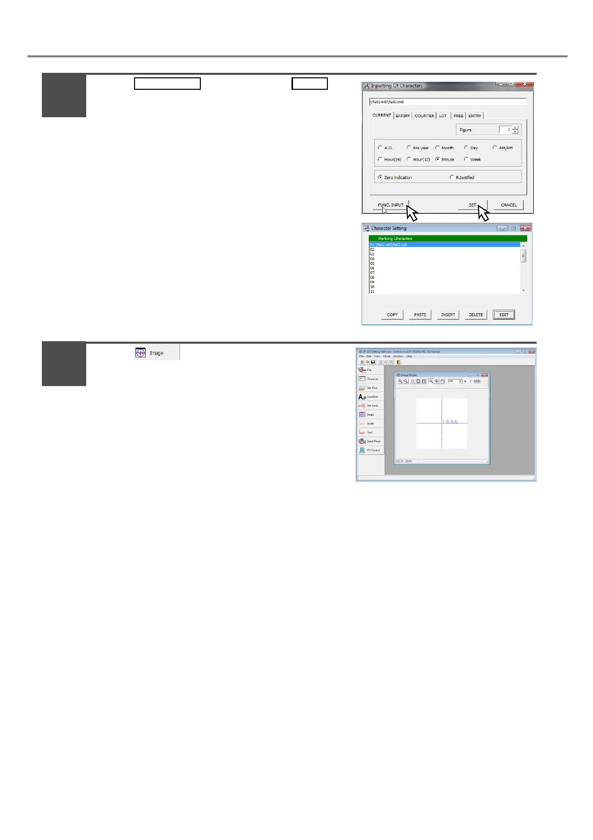 The “\%02:H0\%02:m0” is input in the 01 line of the marking