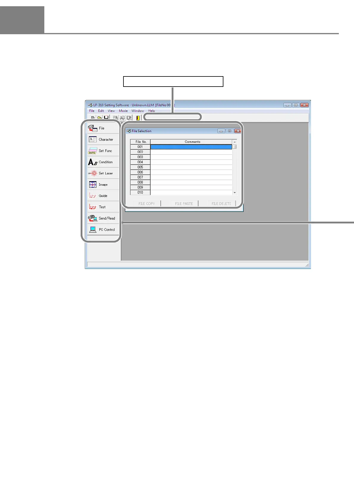 When this setting software is started up, the following screen is displayed.