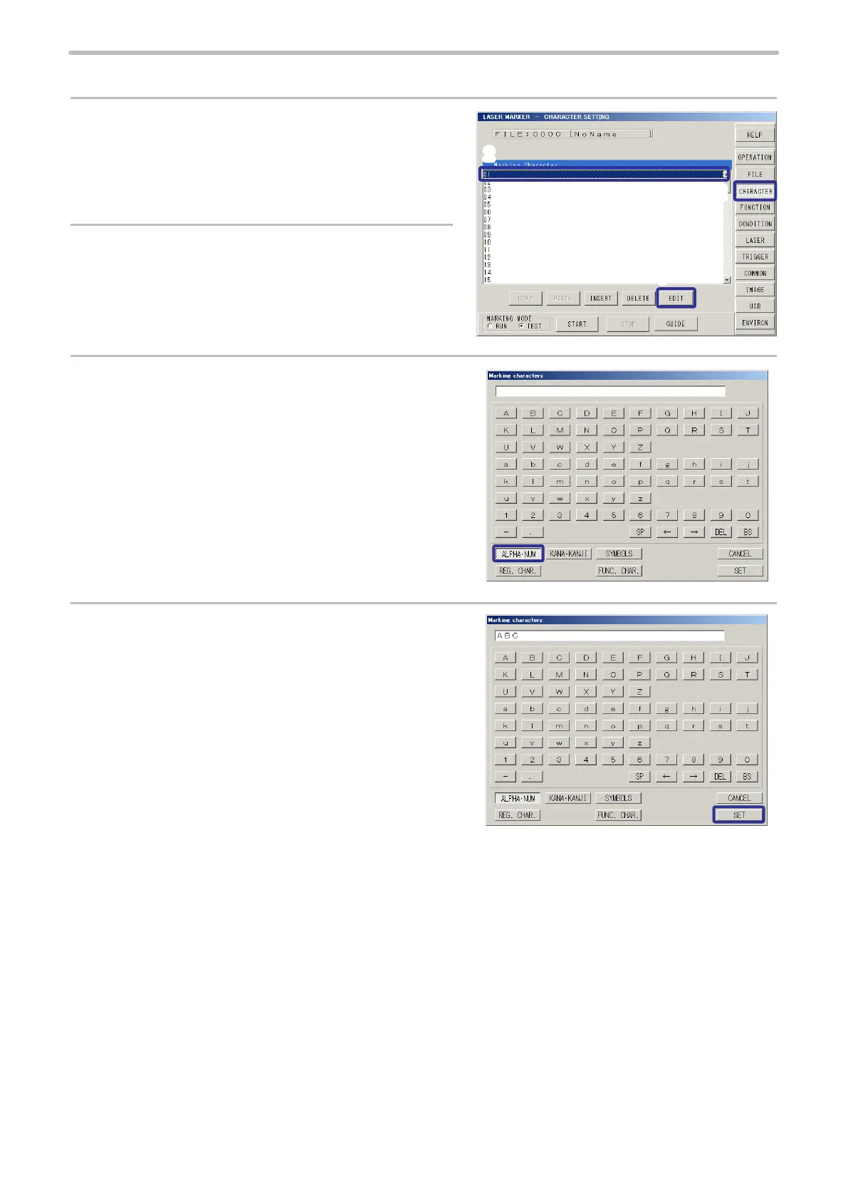 1. Set the marking character.