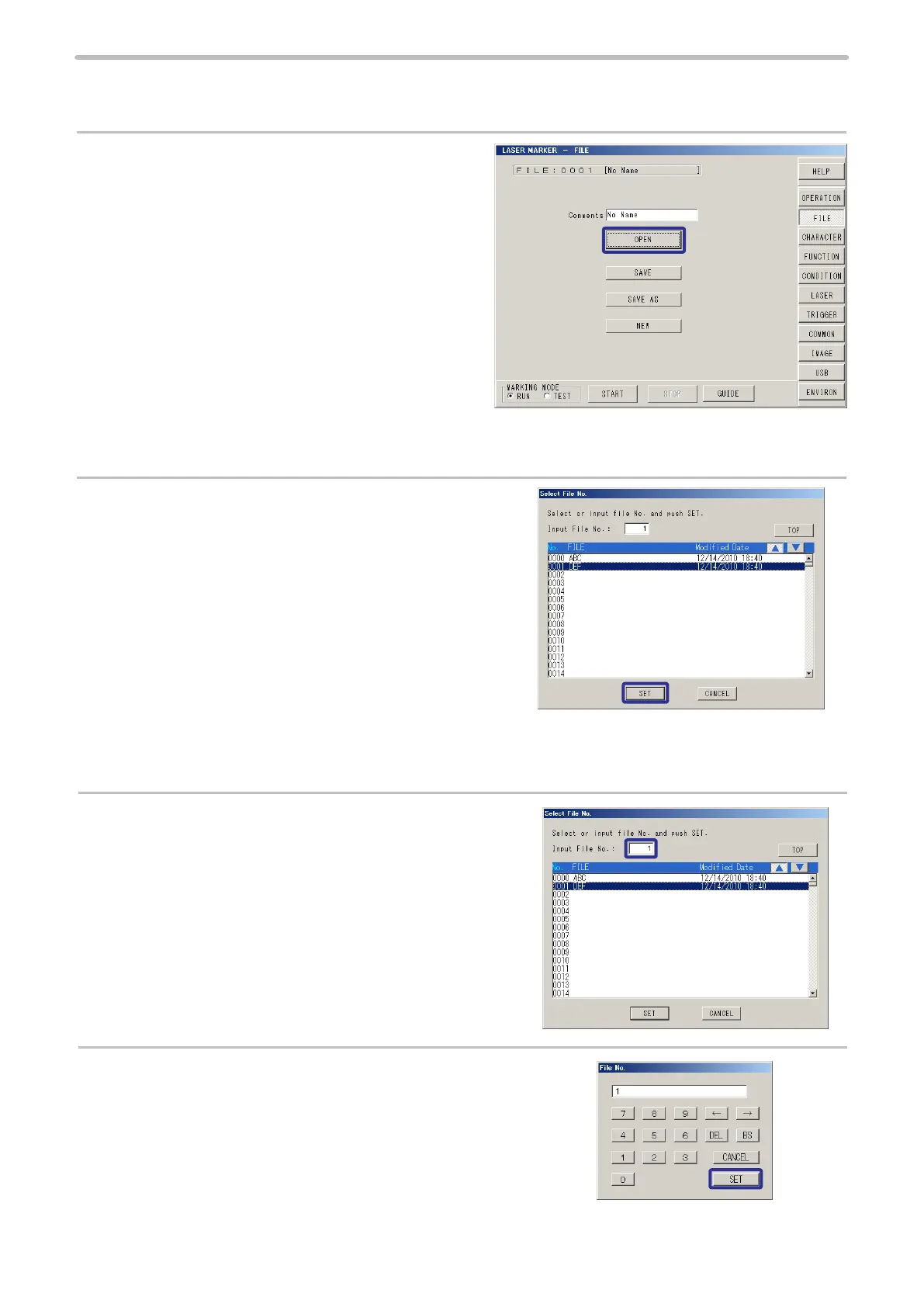 Then press [SET] in Select File No. screen.