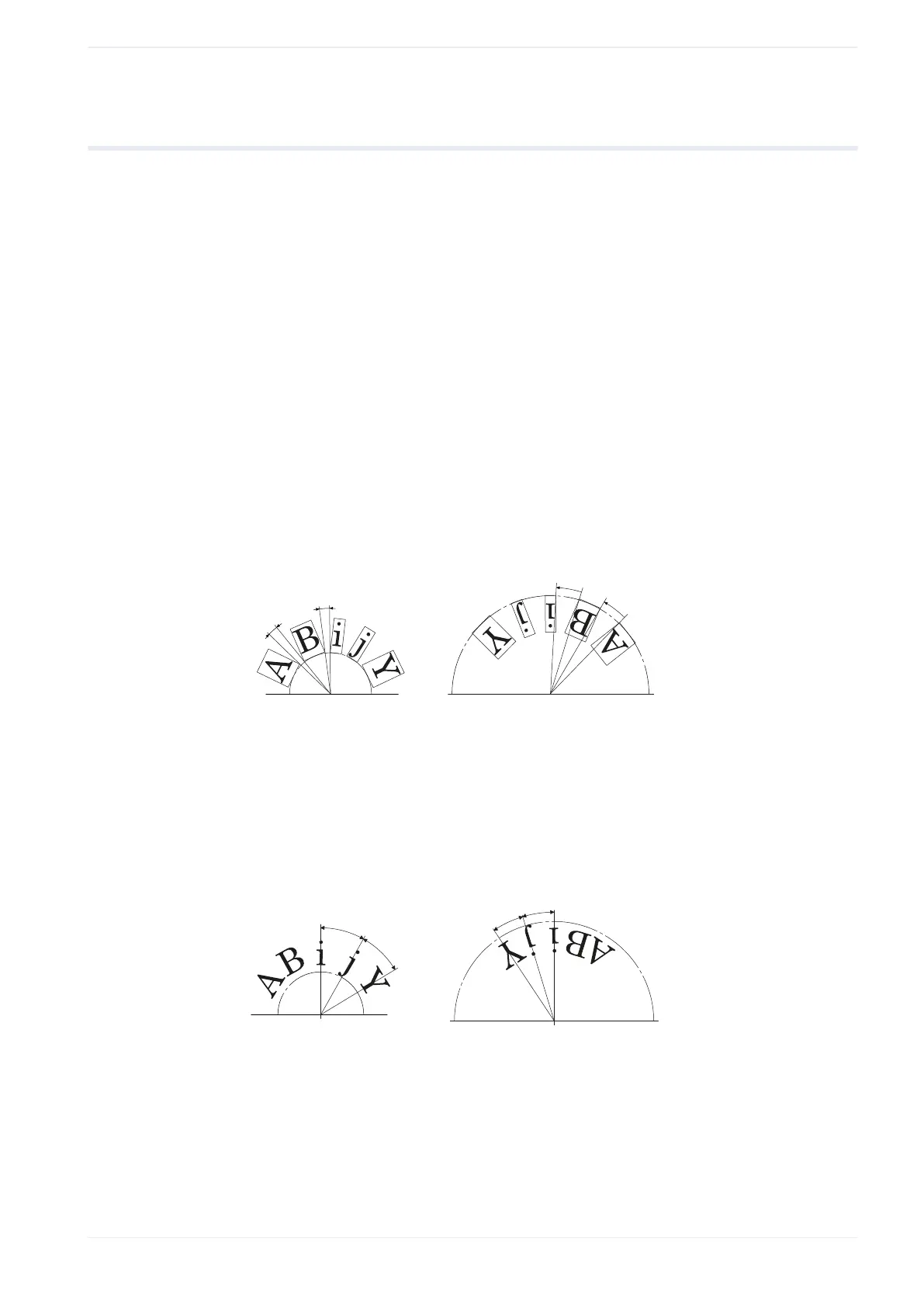 characters. The character spacing value is defined as the angle between the end (right