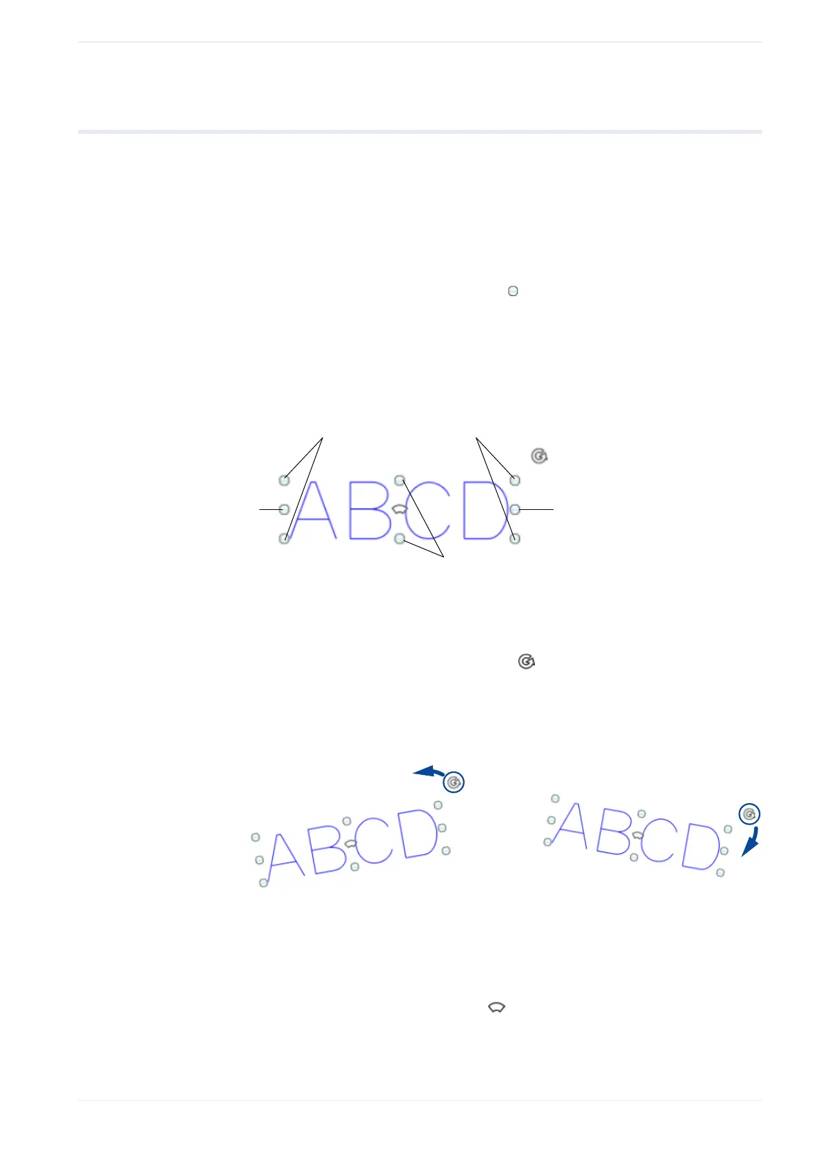 To rotate an object, use the circular arrow symbol . The rotation center of graphic files