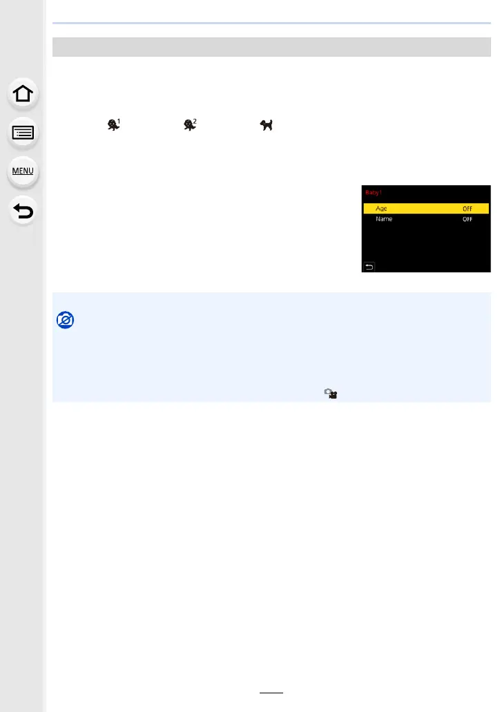 2 Press 3/4 to select [Baby1], [Baby2] or [Pet] and then press [MENU/SET].