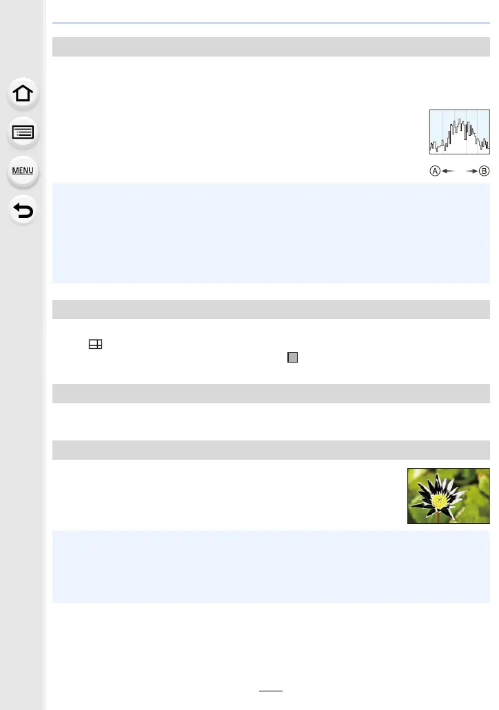 negative (P105) referring to the histogram (P229) and then taking the picture again. It may