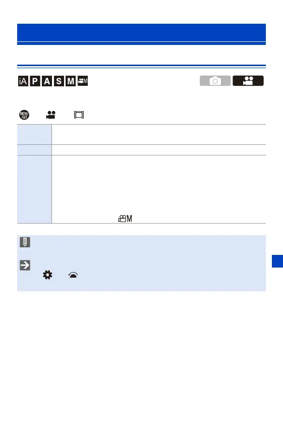 [] ¨ [ ] ¨ [Fn Button Set] ¨ [Setting in REC mode] ¨ [Motion Pic. Rec