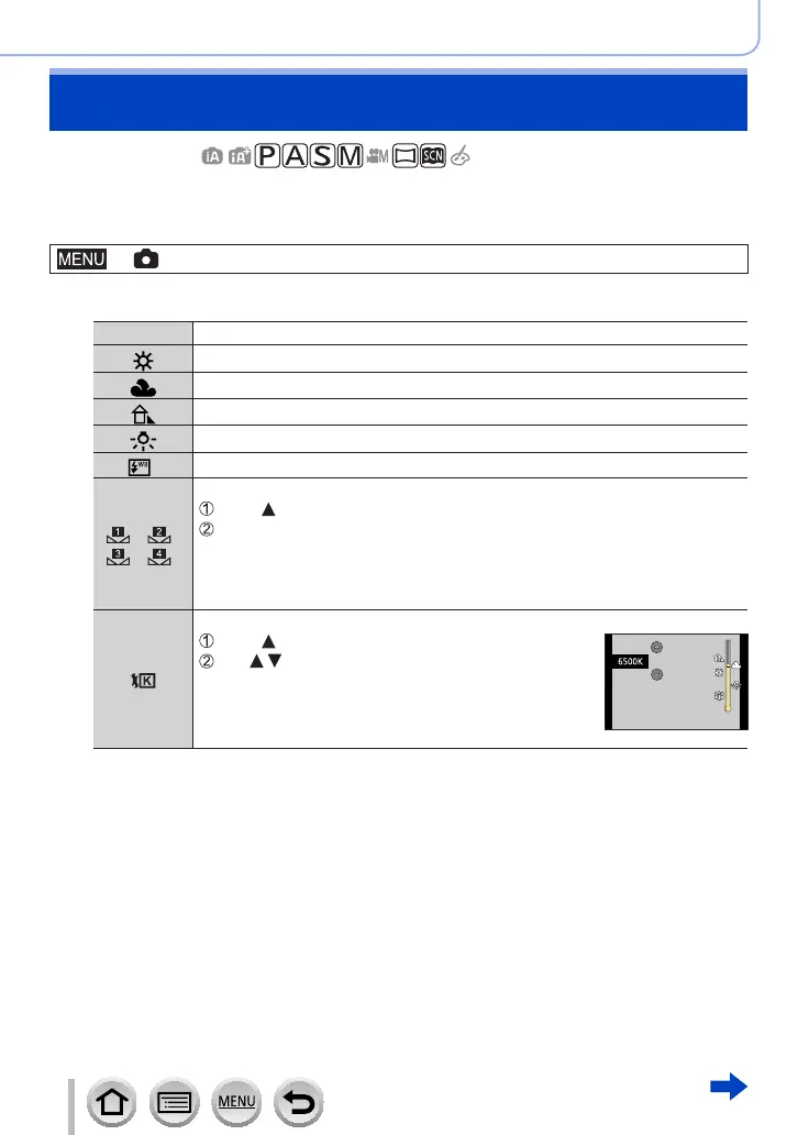 The [AWB] setting is applied while recording motion pictures, recording 4K photos, or