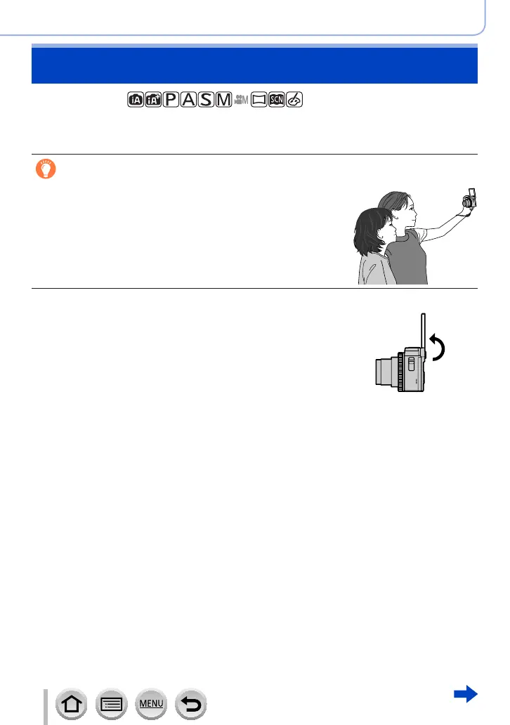 If you rotate the monitor, Self Shot Mode is activated. You can easily take pictures of
