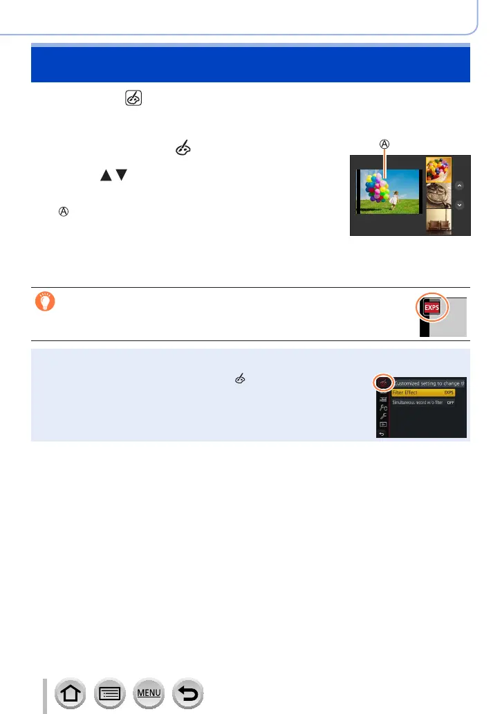 • You can also select the picture effects (filters) by
