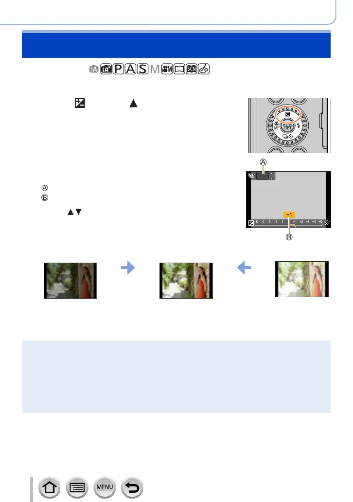 The set Exposure Compensation value is stored even if the camera is turned off. (When [Exposure