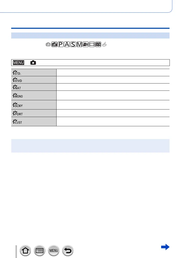 In Intelligent Auto Plus Mode, the setting will be reset to [Standard] when the camera is switched