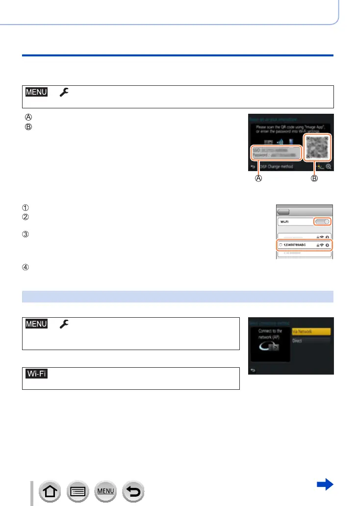 → [Setup] → [Wi-Fi] → [Wi-Fi Function] → [New Connection]
