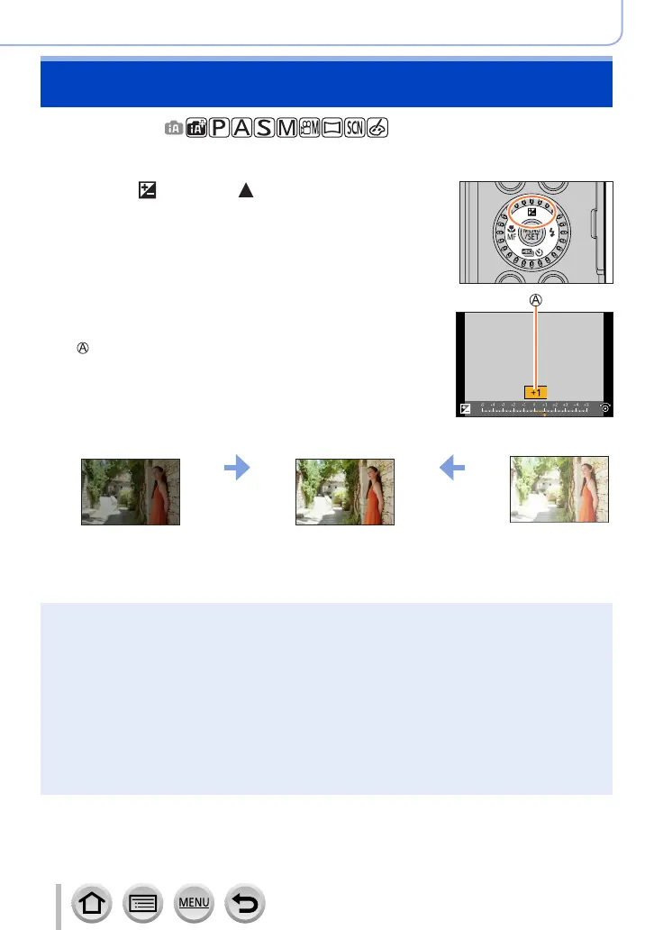 The set Exposure Compensation value is stored even if the camera is turned off. (When [Exposure
