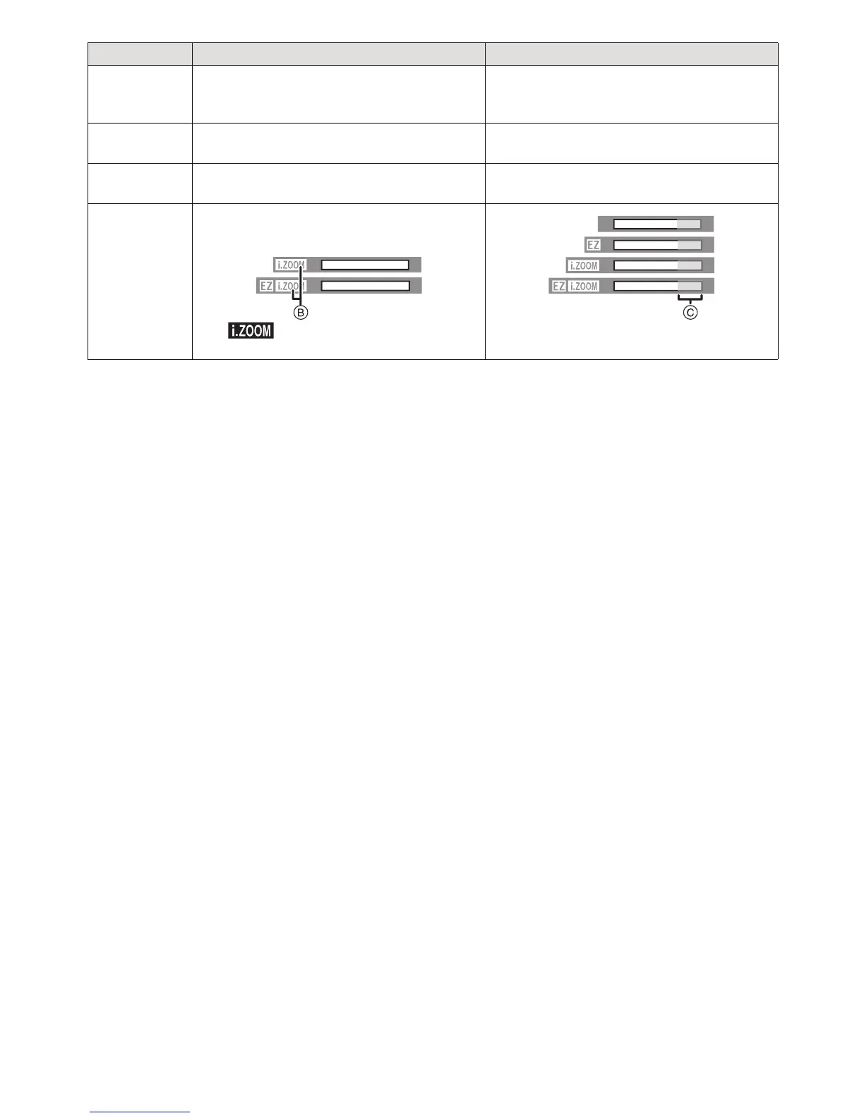 B [ ] is displayed. C The Digital Zoom range is