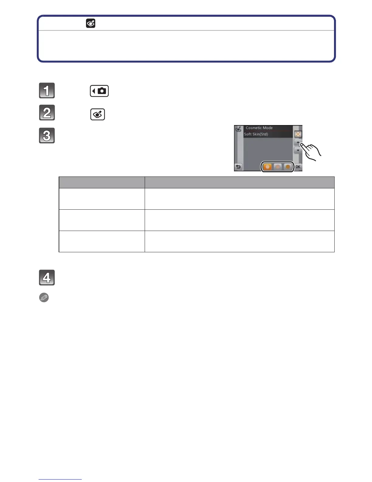 • Cosmetic Mode setting set is memorized even if the camera is turned off.