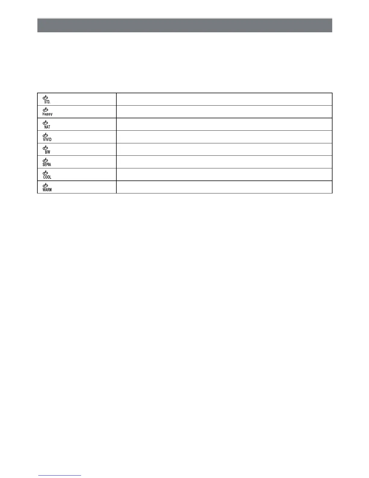 [ ] ([Sepia]) The picture becomes sepia.