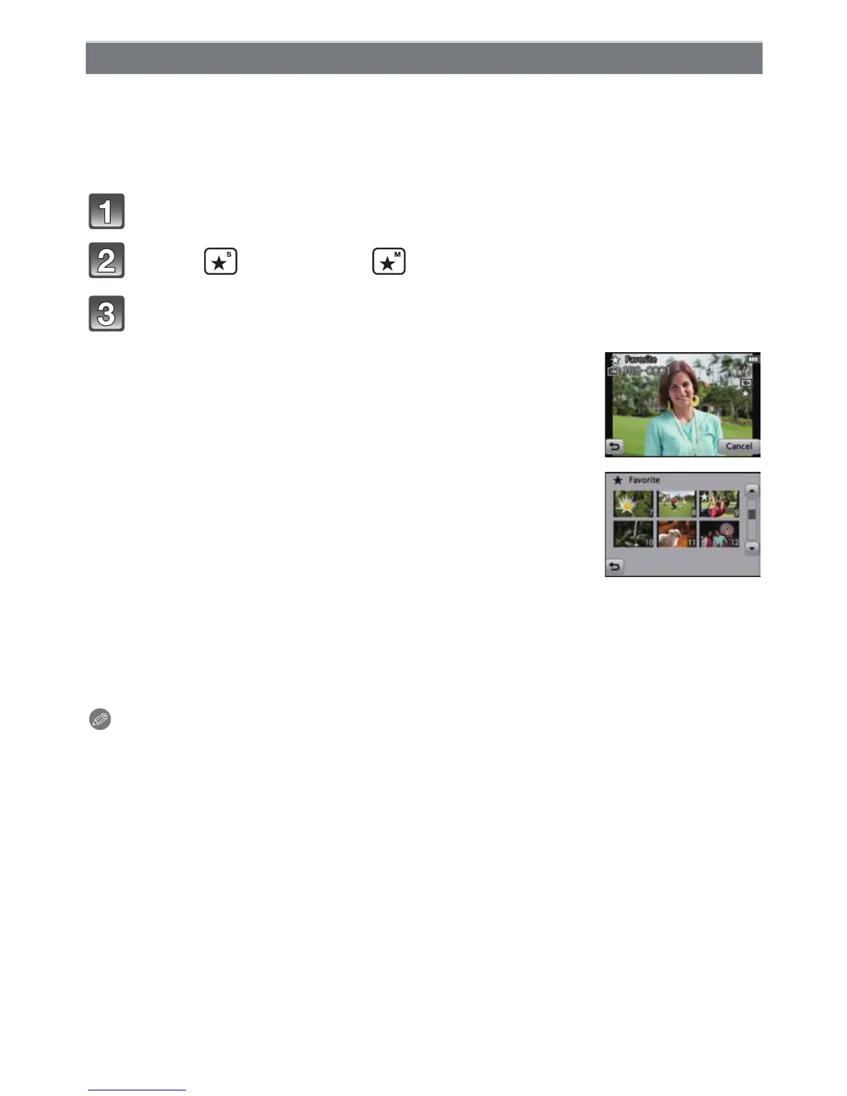 Select [Favorite] on the [Playback] Mode menu. (P34)