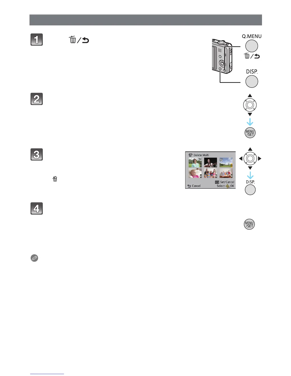 • Depending on the number of pictures to be deleted, it may take some time to delete them.