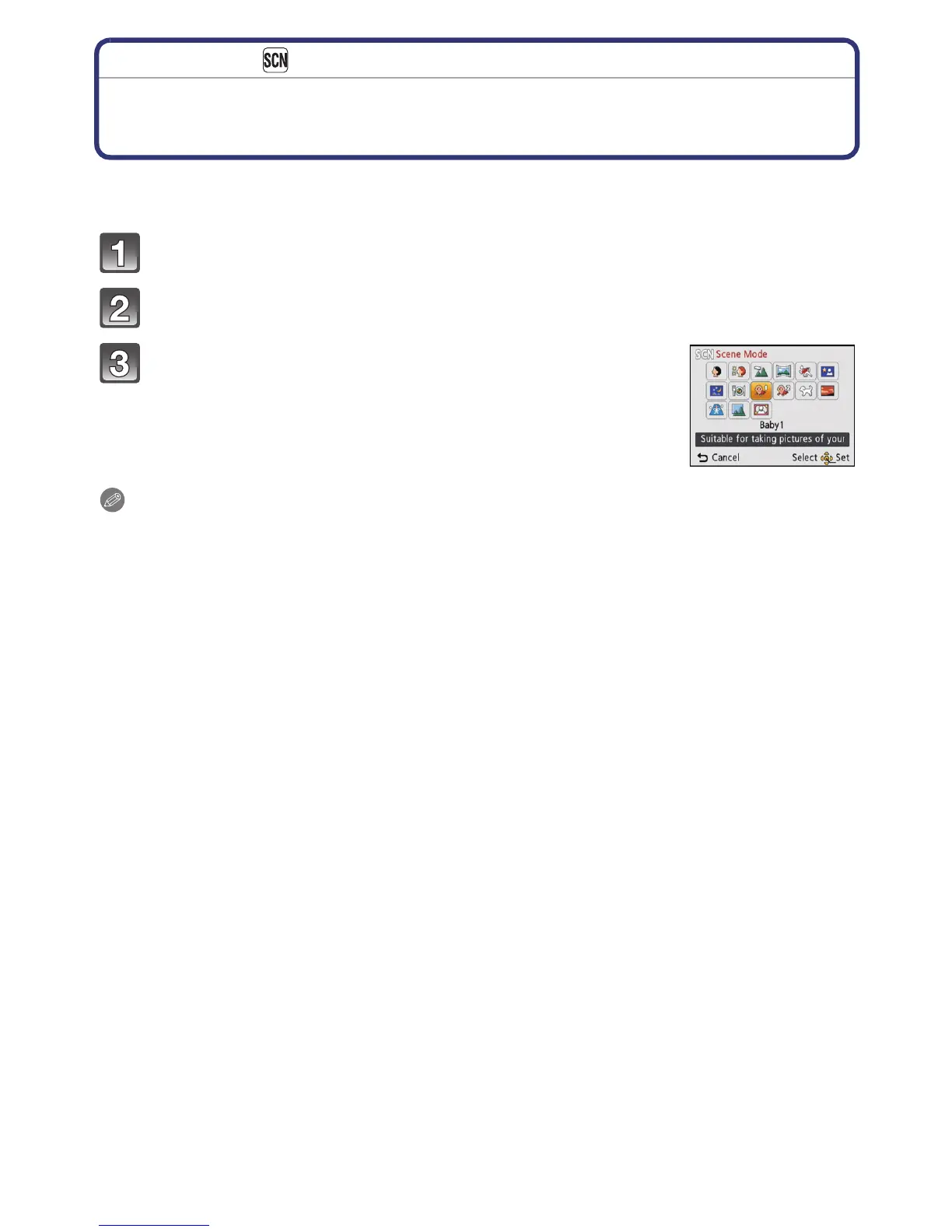 To change the Scene Mode, press [MENU/SET], select [Scene Mode] using 3/4/2/1, and