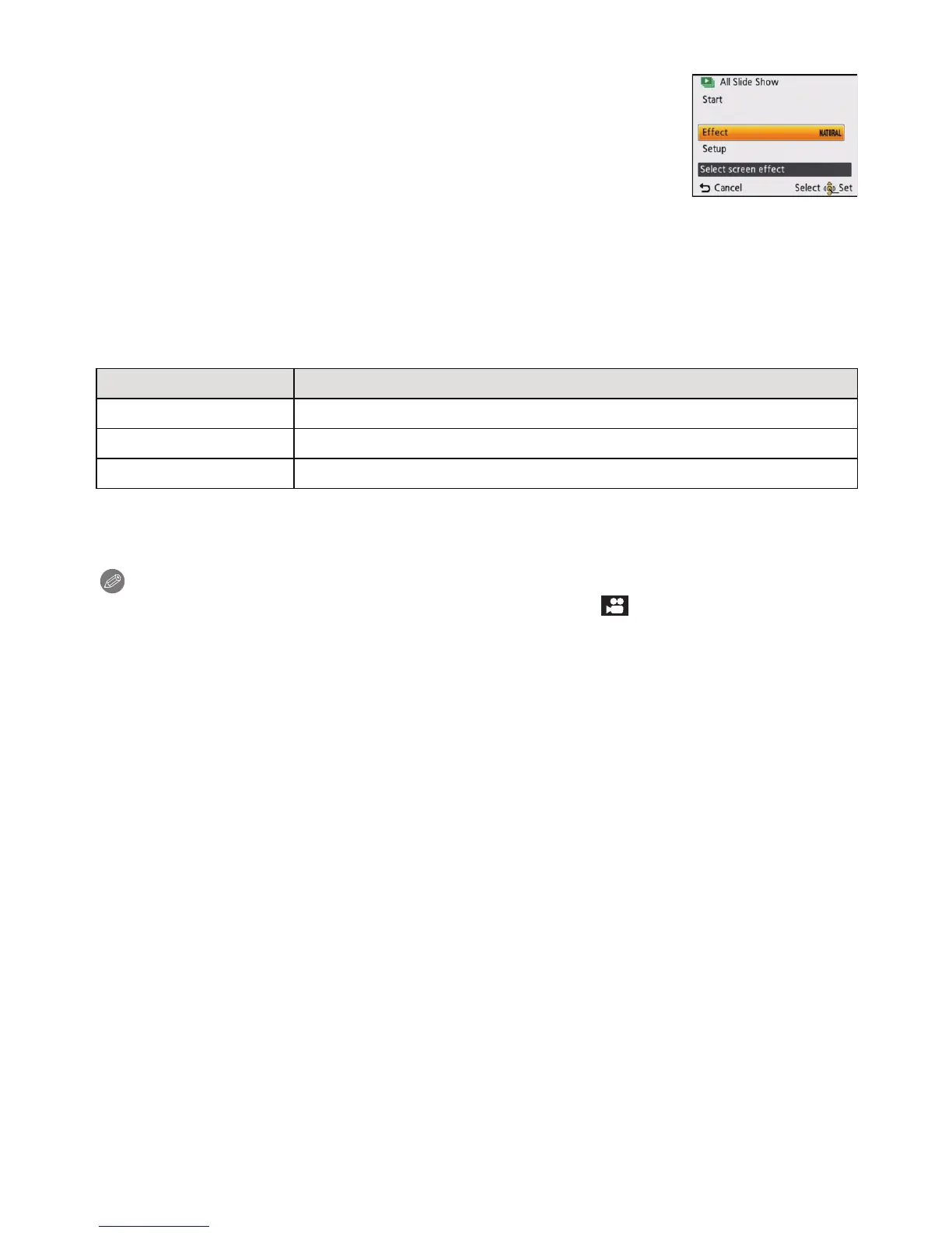 • When playing back a panorama picture, the [Effect] setting is disabled.