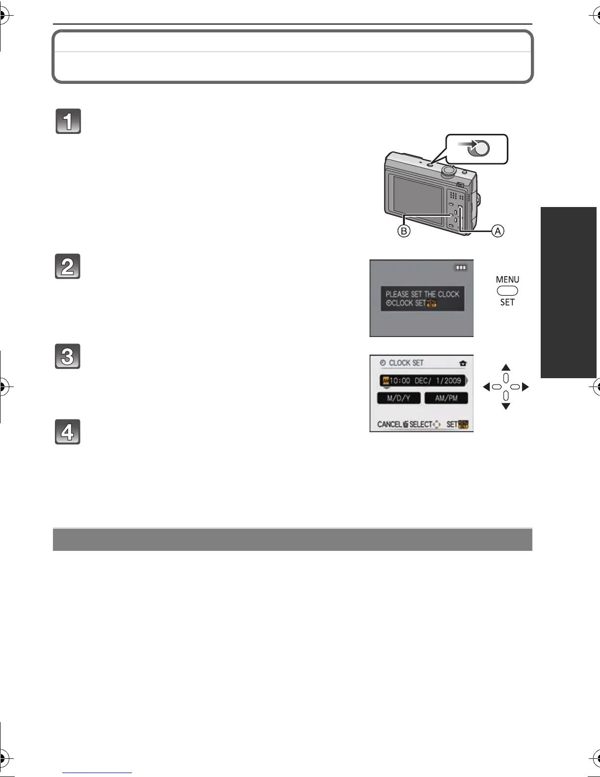 • The clock is not set when the camera is shipped.