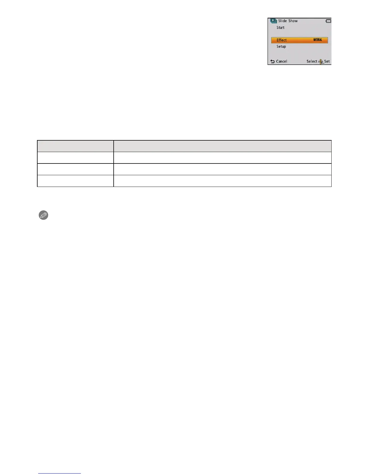 Motion pictures cannot be played back as a slide show. When [Í] (motion picture) is selected