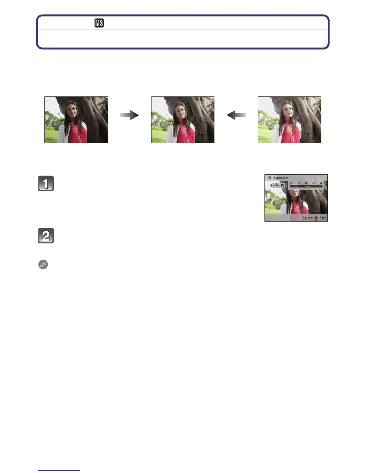 • Exposure compensation cannot be used when in [Starry Sky] in Scene Mode.