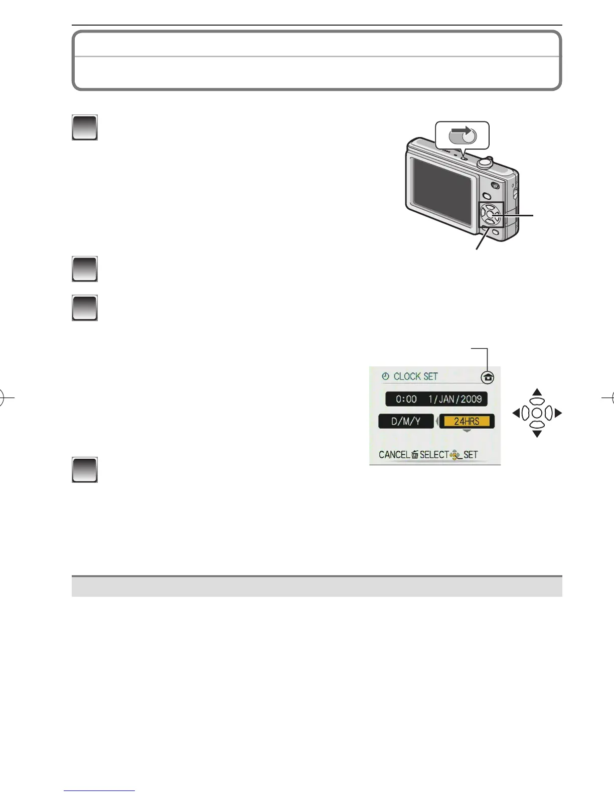 • After completing the clock settings, turn the camera off. Then turn the camera