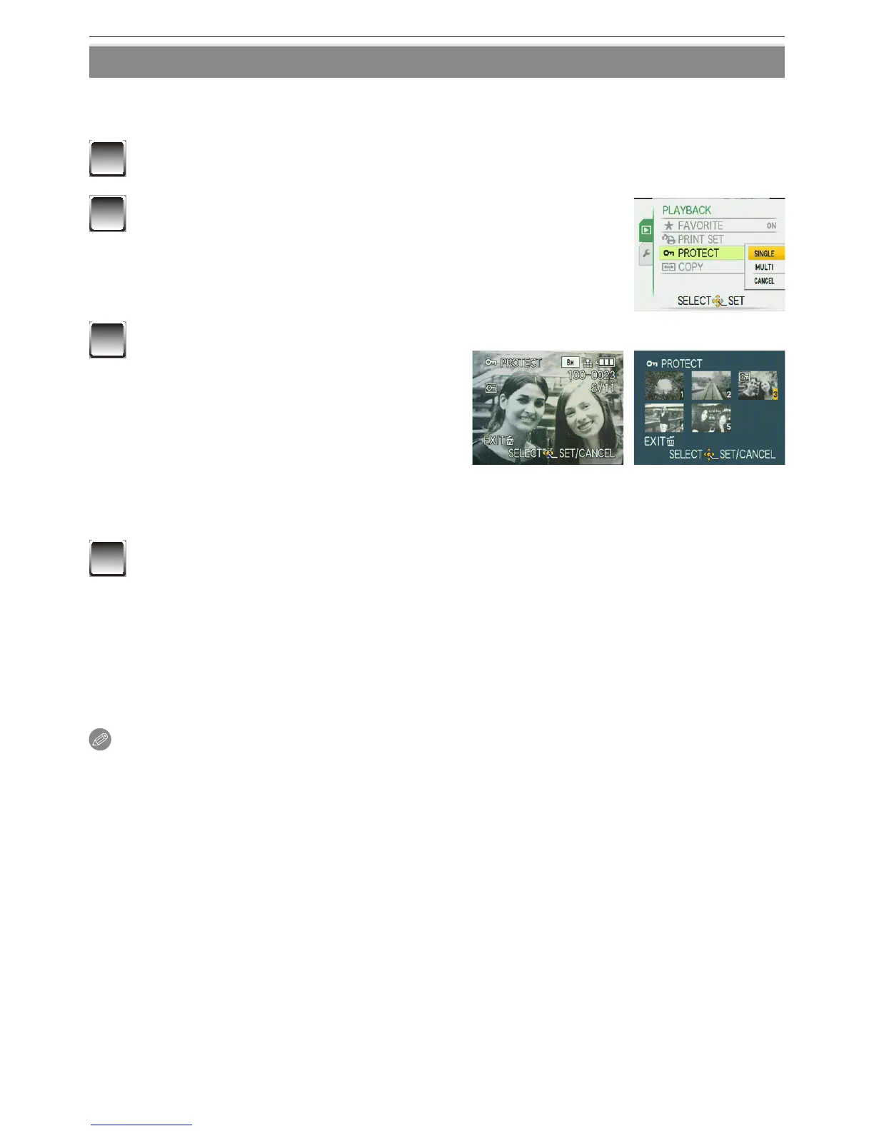Select [PROTECT] on the [PLAYBACK] menu. (P21)