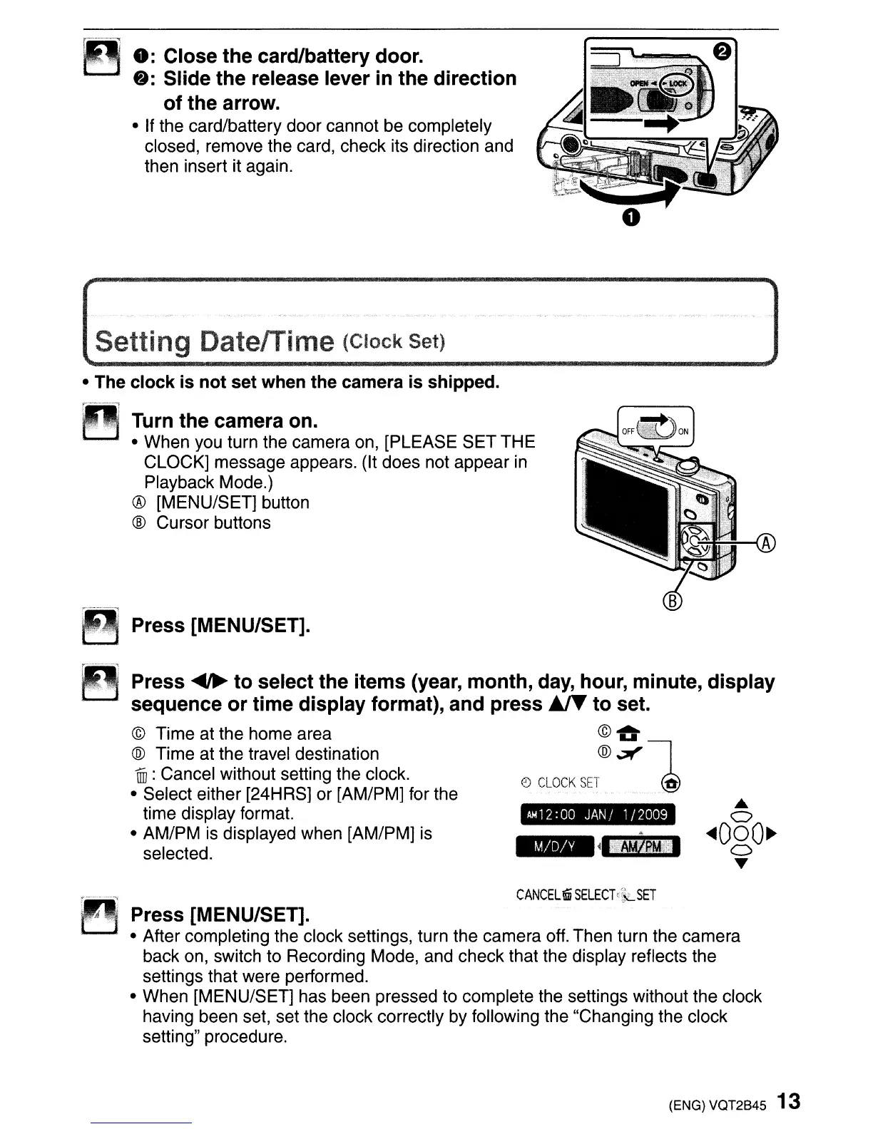 When [MENU/SET] has been pressed to complete the settings without the clock