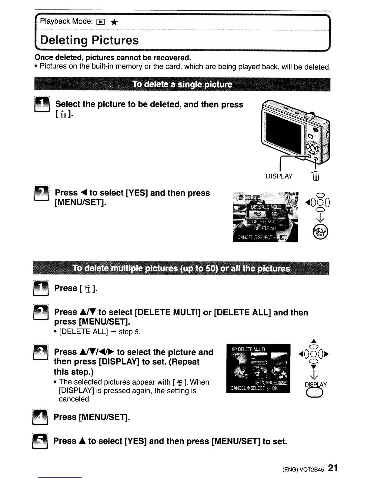Pictures on the built-in memory or the card, which are being played back, will be deleted.