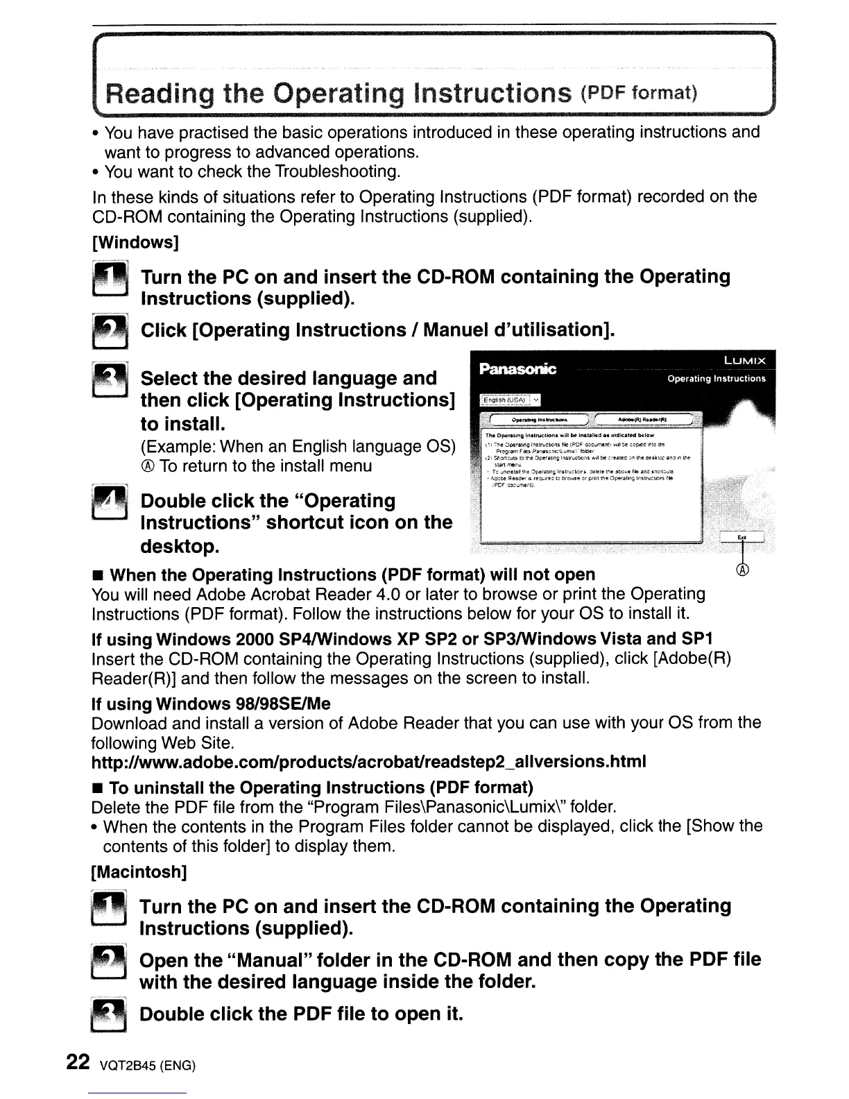Delete the PDF file from the "Program Files\Panasonic\Lumix\" folder.