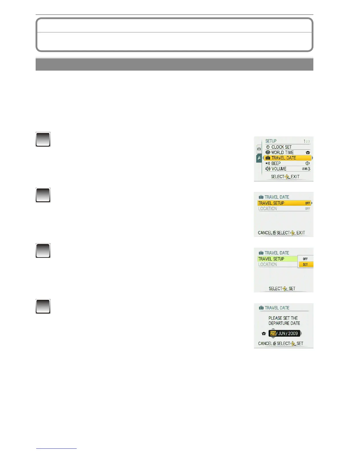 Select [TRAVEL DATE] from the [SETUP] menu,