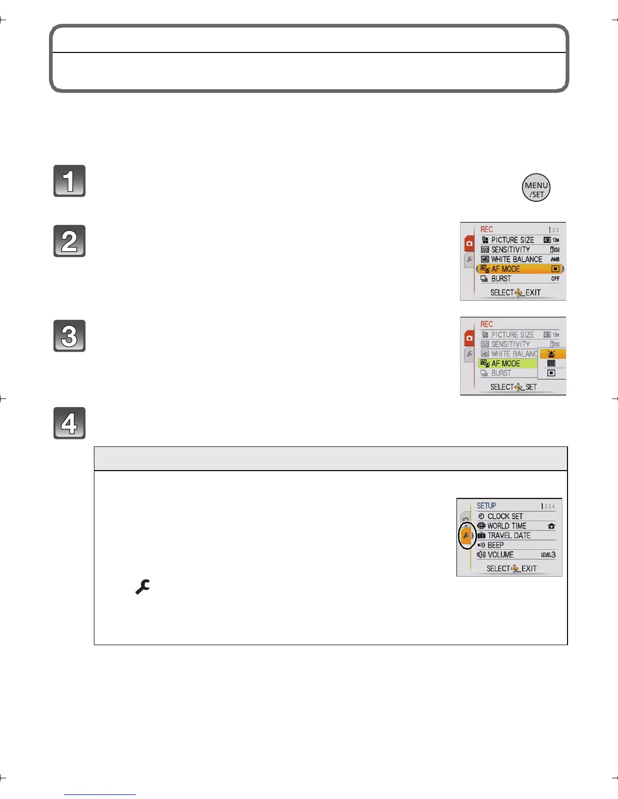 same setting can be used for the [PLAYBACK] menu and [SETUP] menu as well.