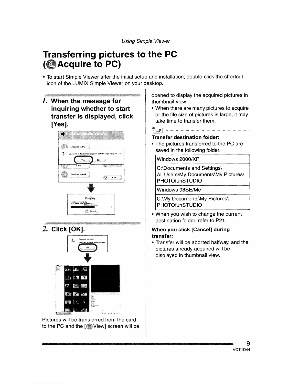 Panasonic Lumix DMC-FX12 - Transferring Pictures to PC; Acquiring Pictures