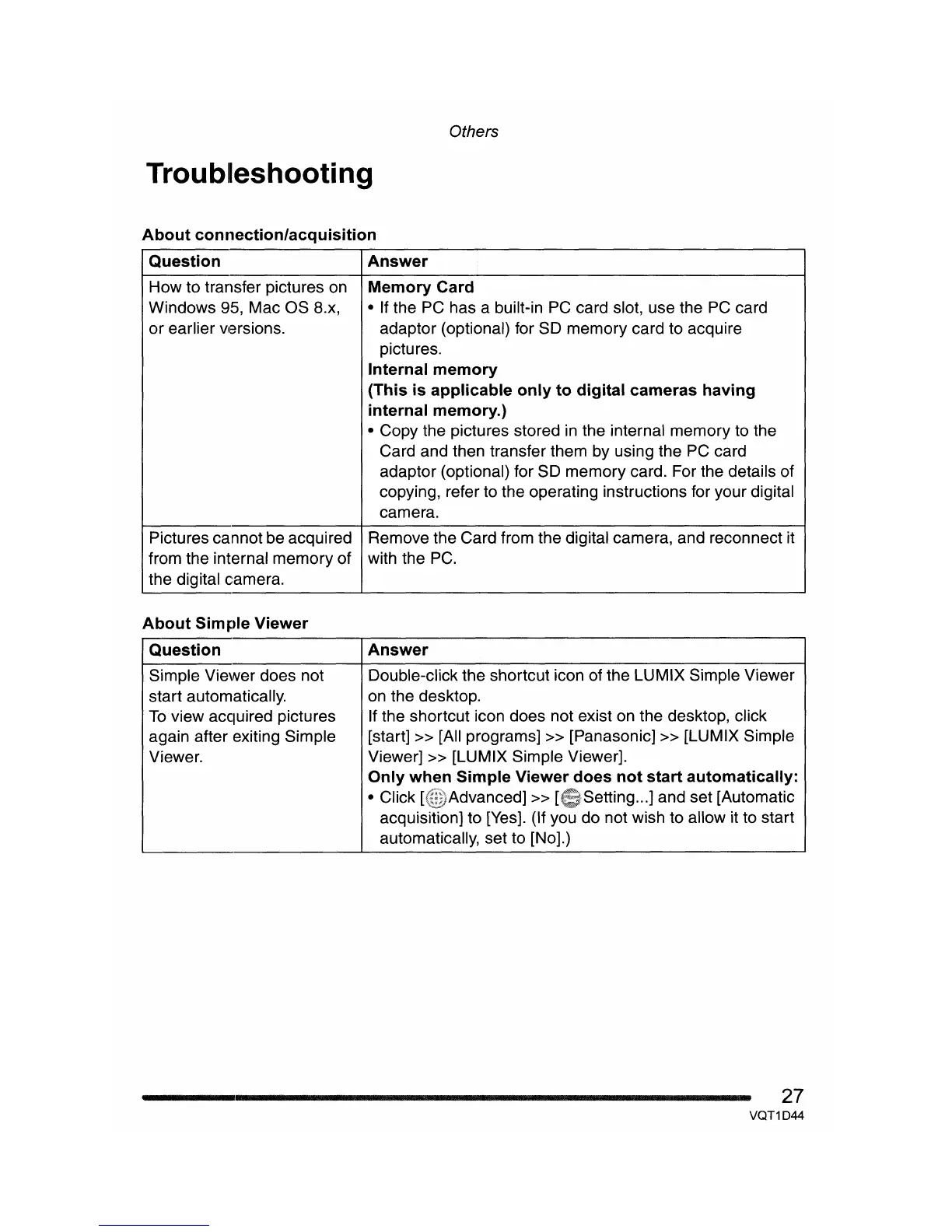 Panasonic Lumix DMC-FX12 - Troubleshooting Common Issues; Simple Viewer Not Starting
