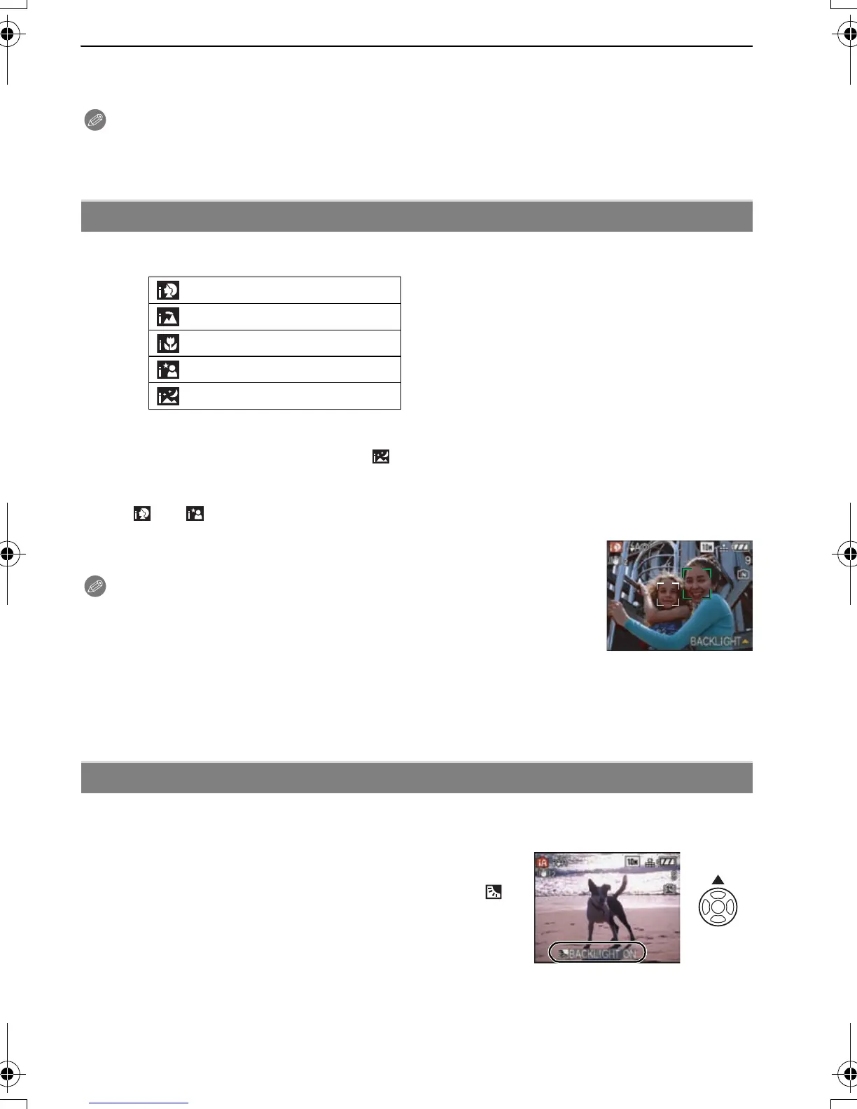When [ ] or [ ] is selected, the camera automatically detects a person’s face, and it will