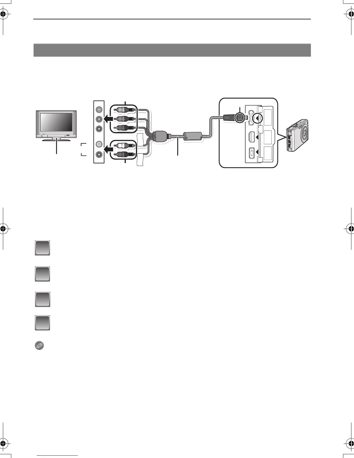 You can enjoy high quality pictures and motion pictures on the TV by connecting the camera with