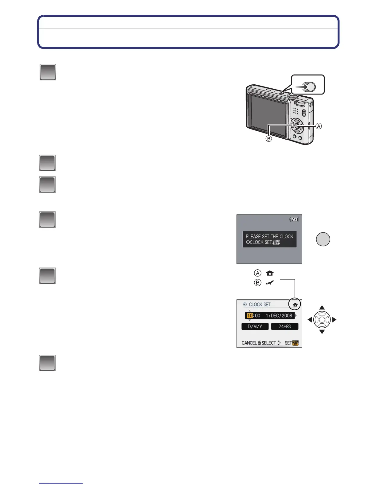 • After completing the clock settings, turn the camera off. Then turn the camera back on,