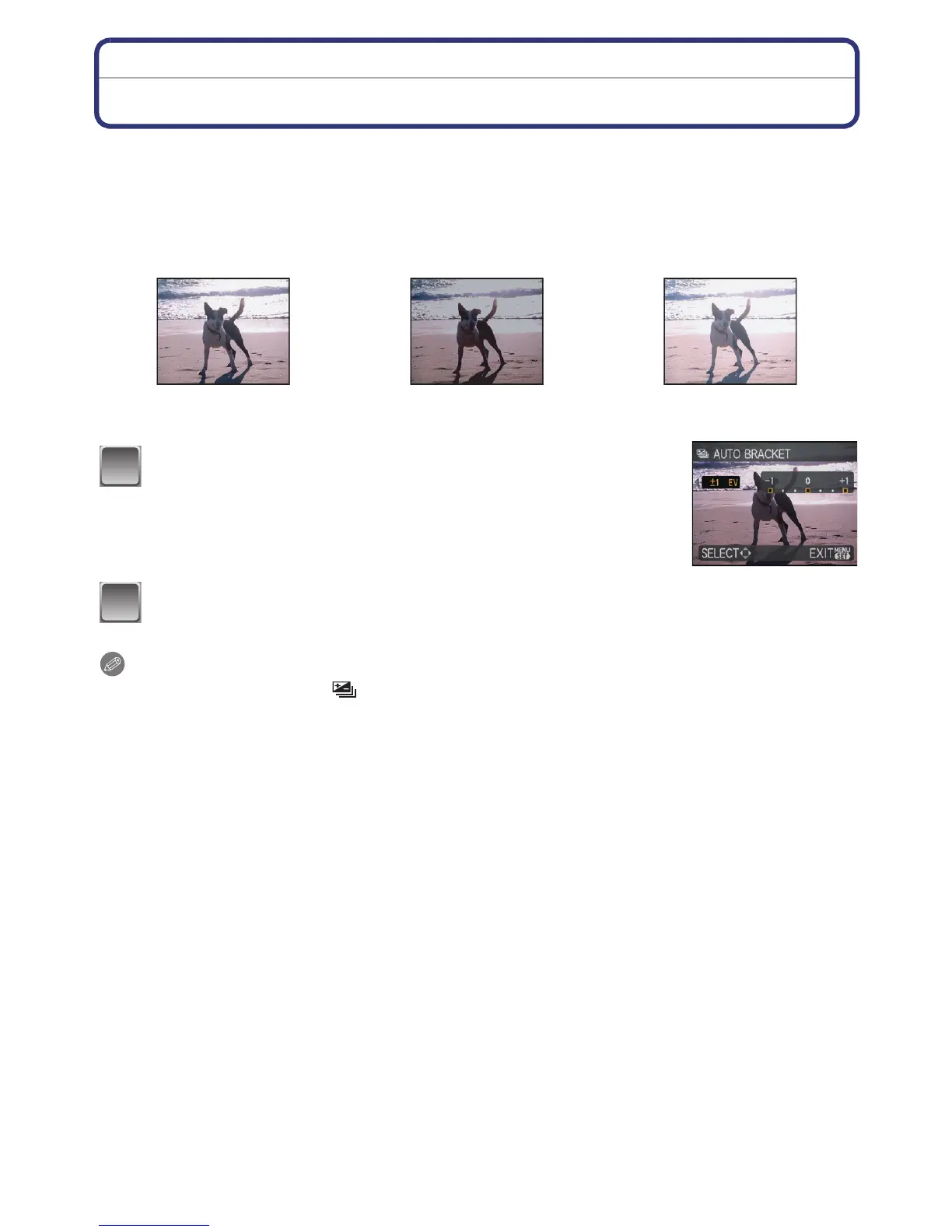 • When taking pictures using auto bracket after setting the exposure compensation range, the
