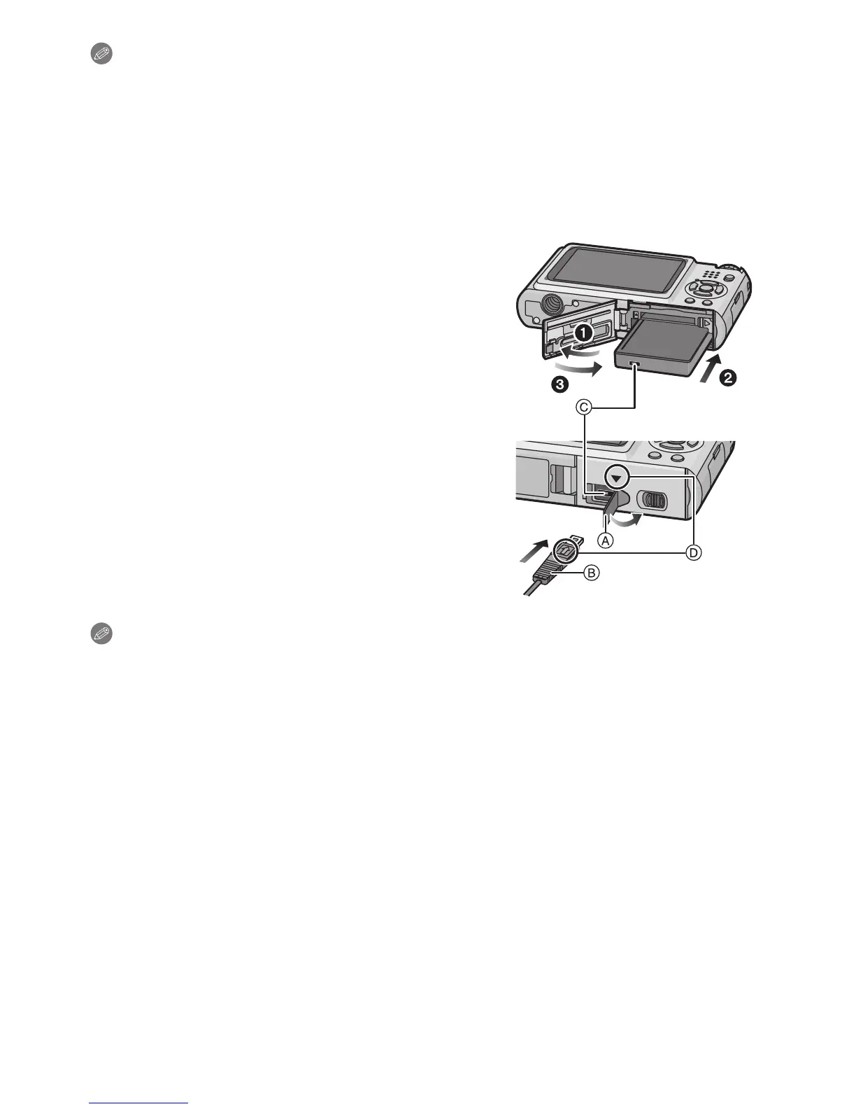 • Make sure to unplug the AC adaptor when you open the card/battery door.