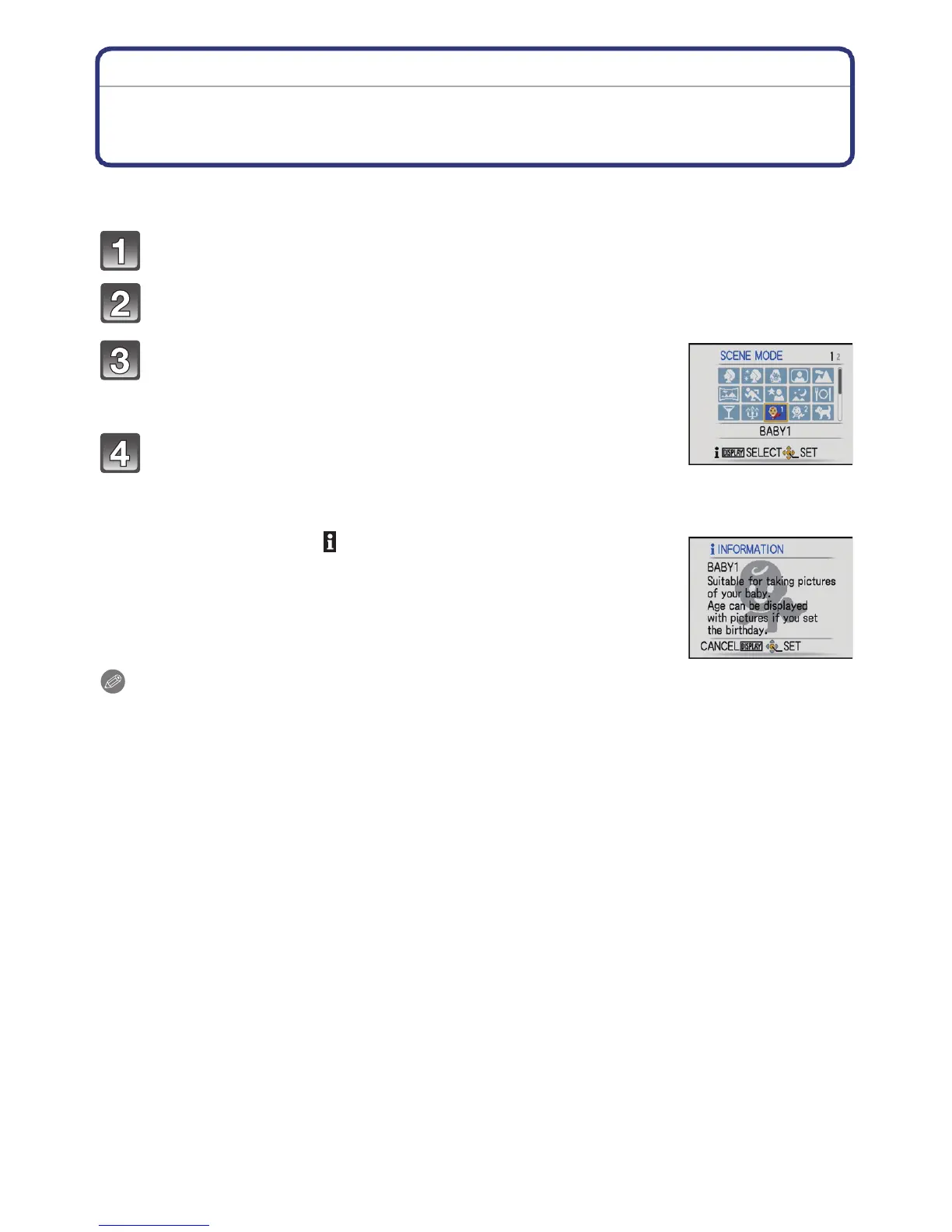 If you press [DISPLAY] when selecting a scene mode in step 3,