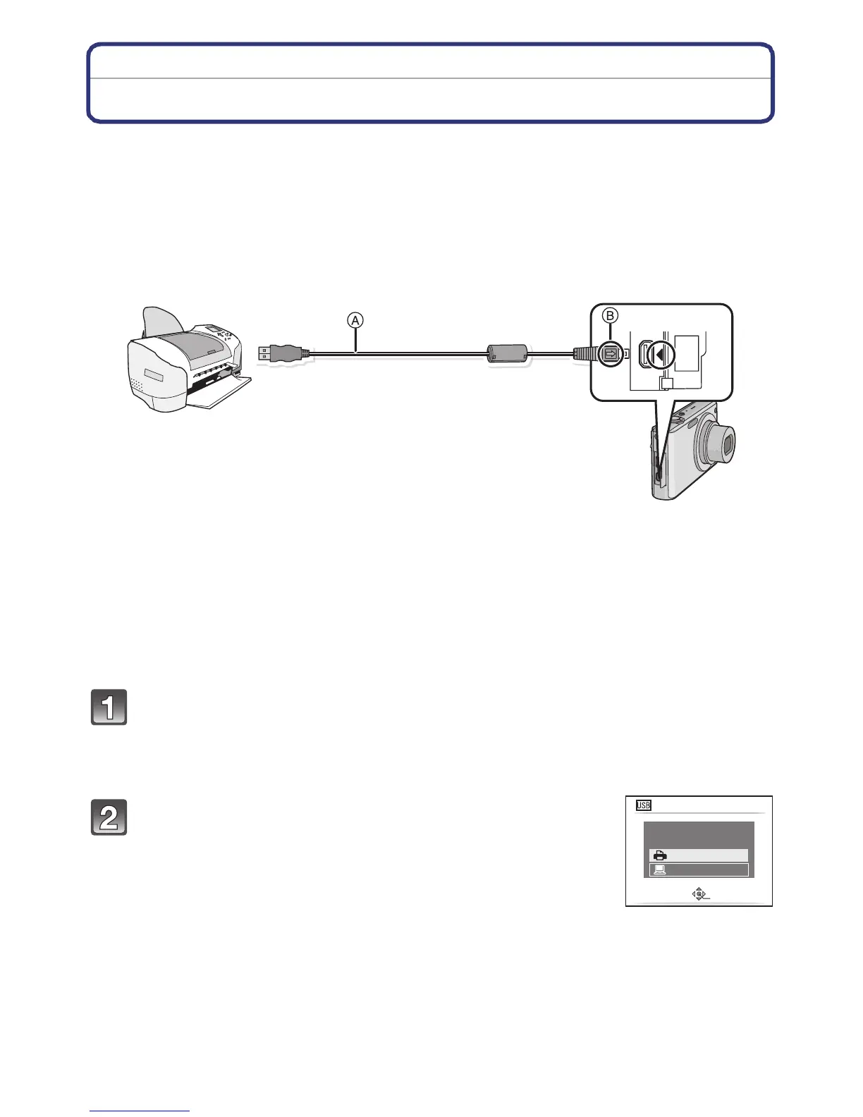 Connect the camera to a printer via the USB connection cable A