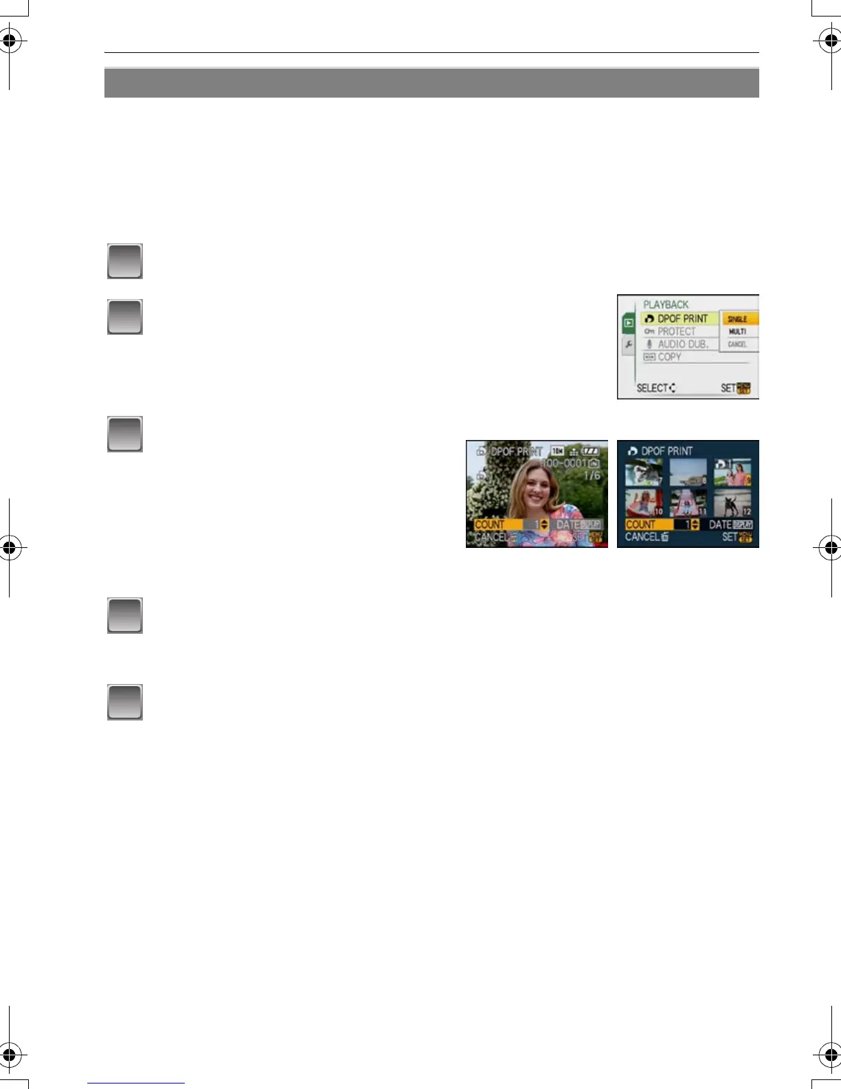 Select [DPOF PRINT] on the [PLAYBACK] mode menu. (P21)