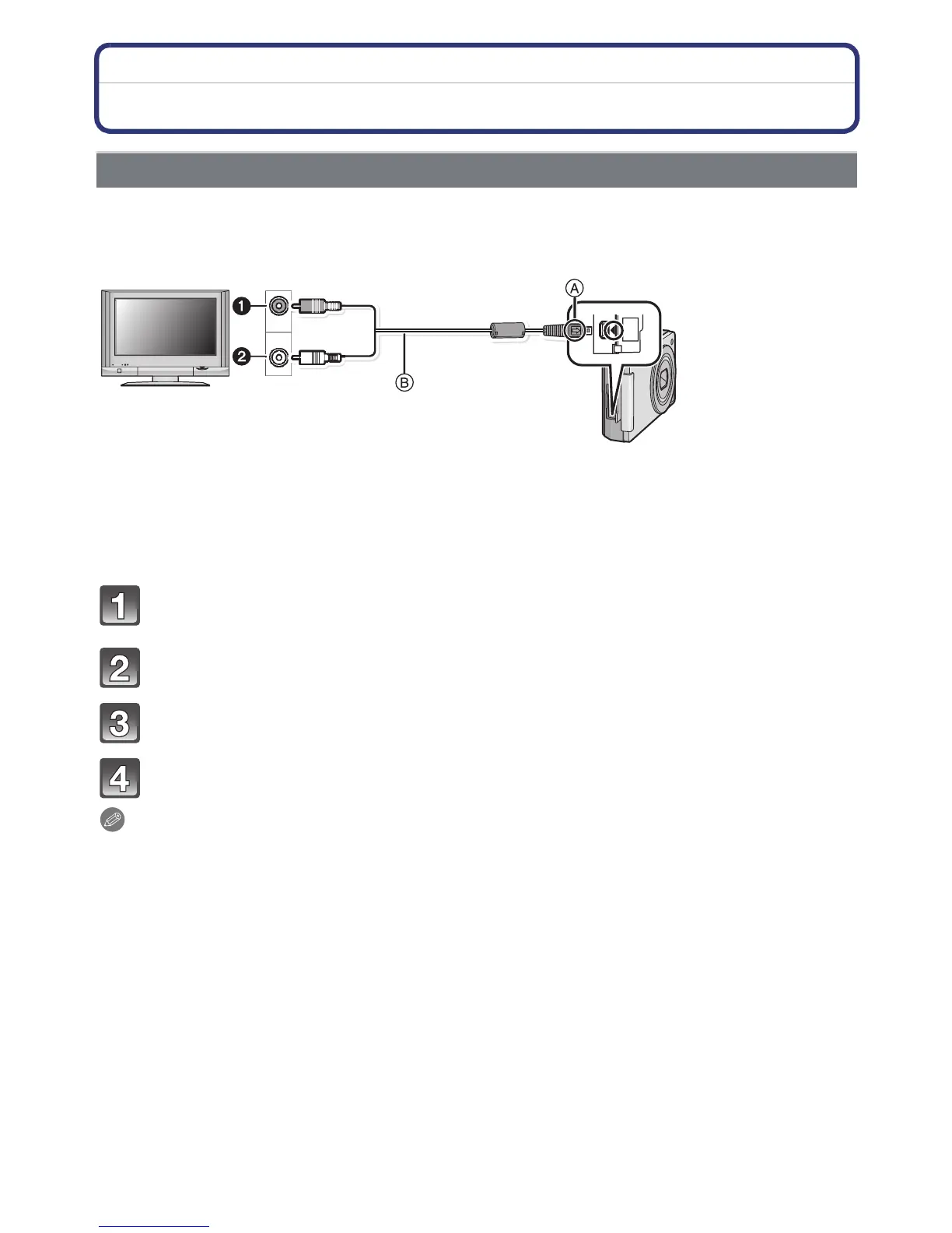 Connect the AV cable B (supplied) to the video input and the audio